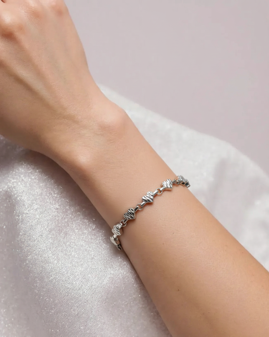 Adaugă un plus de rafinament fiecărei apariții cu această brățară fină din argint 925 MANY HEARTS, creată cu atenție la detalii și finisată cu un luciu impecabil. Designul delicat o face ușor de integrat în orice ținută, de zi sau de seară, oferind un aer elegant și modern.