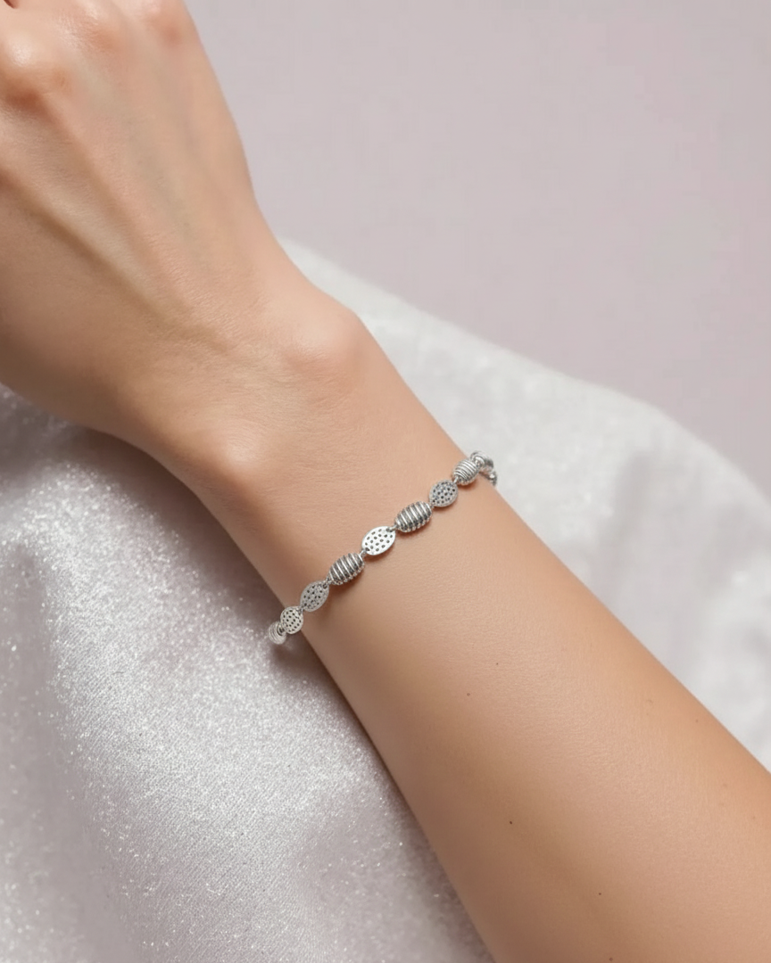 Adaugă un plus de rafinament fiecărei apariții cu această brățară fină din argint 925 SHINY ROUNDS, creată cu atenție la detalii și finisată cu un luciu impecabil. Designul delicat o face ușor de integrat în orice ținută, de zi sau de seară, oferind un aer elegant și modern.