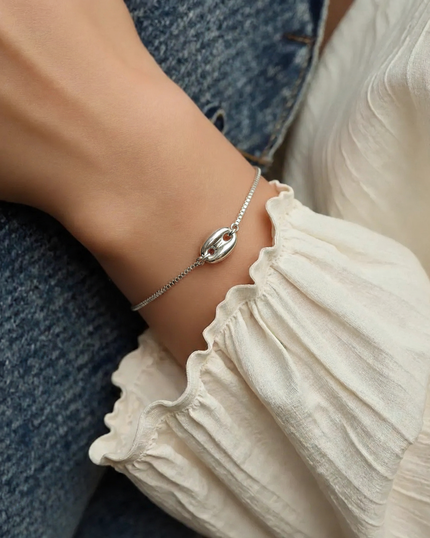 Adaugă un plus de rafinament fiecărei apariții cu această brățară fină din argint 925 SIMPLE BUTTON, creată cu atenție la detalii și finisată cu un luciu impecabil. Designul delicat o face ușor de integrat în orice ținută, de zi sau de seară, oferind un aer elegant și modern.