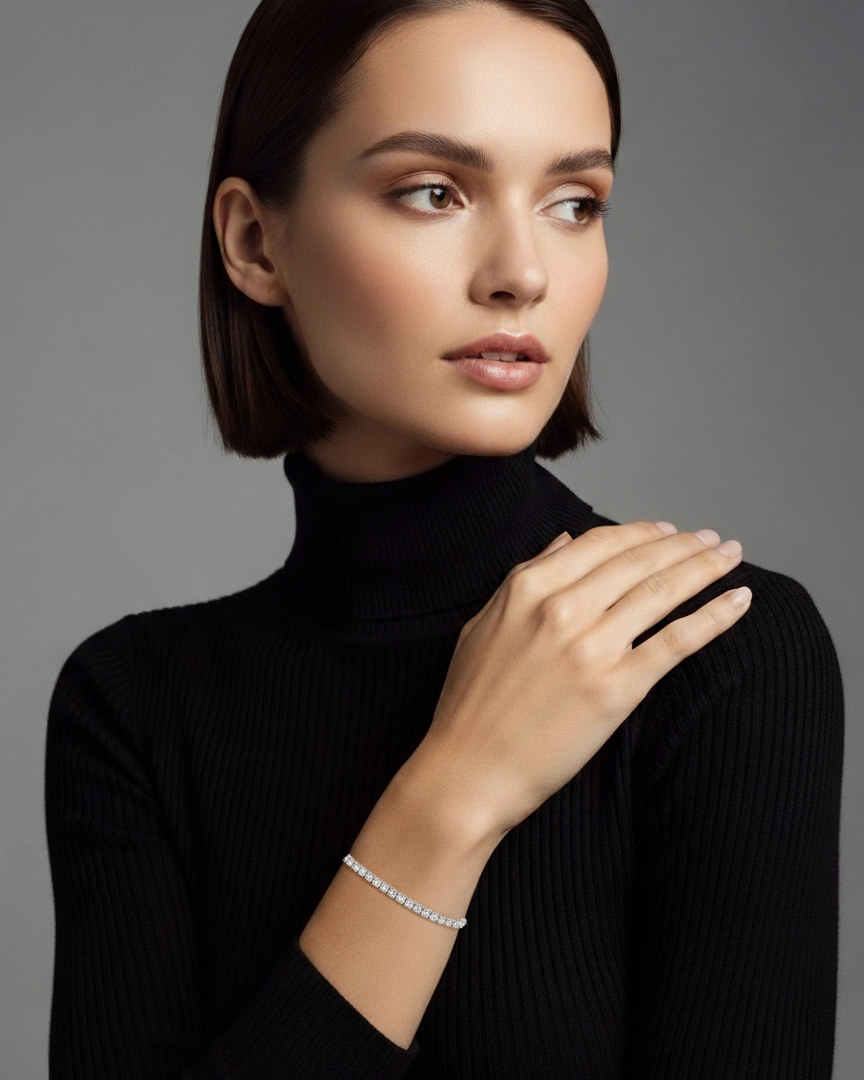Adaugă un plus de rafinament fiecărei apariții cu această brățară fină din argint 925 TENNIS, creată cu atenție la detalii și finisată cu un luciu impecabil. Designul delicat o face ușor de integrat în orice ținută, de zi sau de seară, oferind un aer elegant și modern.