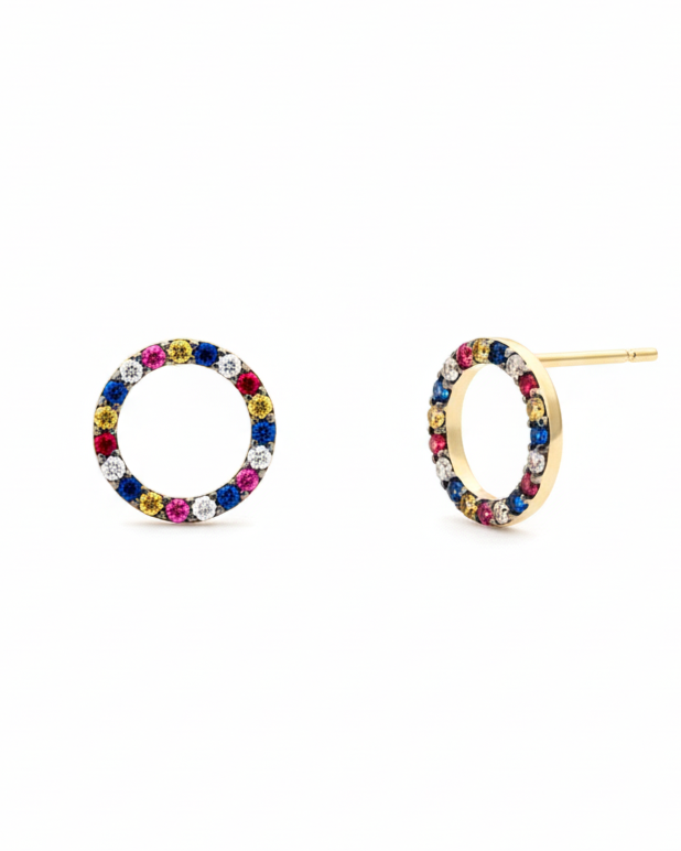 Adaugă o notă de eleganță fiecărei ținute cu acești cercei din argint 925 RAINBOW CIRCLE AURII, realizați cu grijă pentru detalii și un finisaj perfect lucios. Designul lor clasic îi face ușor de purtat zi de zi, dar suficient de rafinat pentru ocazii speciale.