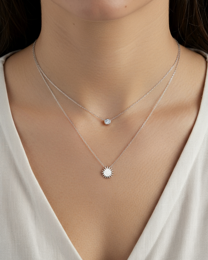 Completează-ți ținutele cu un plus de eleganță purtand acest colier din argint 925 CRYSTAL AND SUN. Designul minimalist îl face ușor de asortat, adăugând un accent modern și rafinat, fie că alegi să îl porți la birou, într-o ieșire casual sau la un eveniment special.