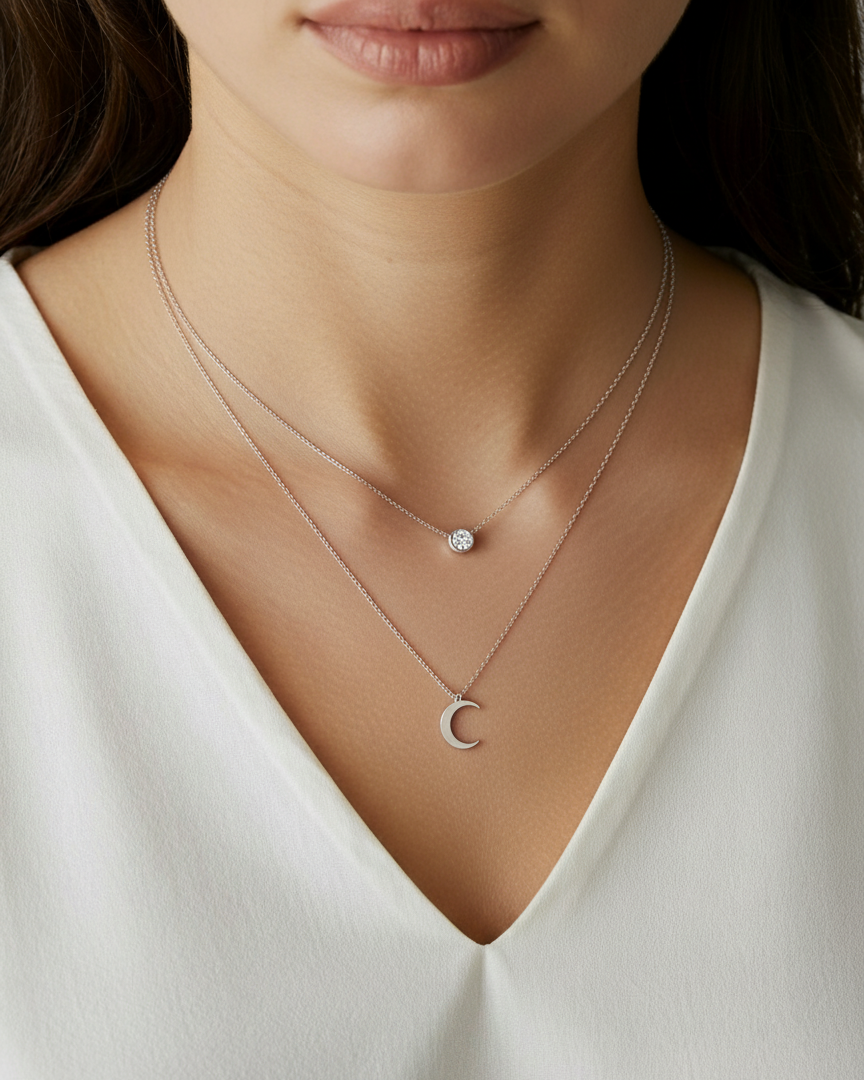 Completează-ți ținutele cu un plus de eleganță purtand acest colier din argint 925 DOUBLE MOON. Designul minimalist îl face ușor de asortat, adăugând un accent modern și rafinat, fie că alegi să îl porți la birou, într-o ieșire casual sau la un eveniment special.