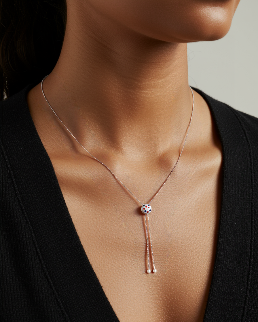 Completează-ți ținutele cu un plus de eleganță purtand acest colier din argint 925 COLORED WHEEL 9, care este reglabil. Designul minimalist îl face ușor de asortat, adăugând un accent modern și rafinat, fie că alegi să îl porți la birou, într-o ieșire casual sau la un eveniment special.