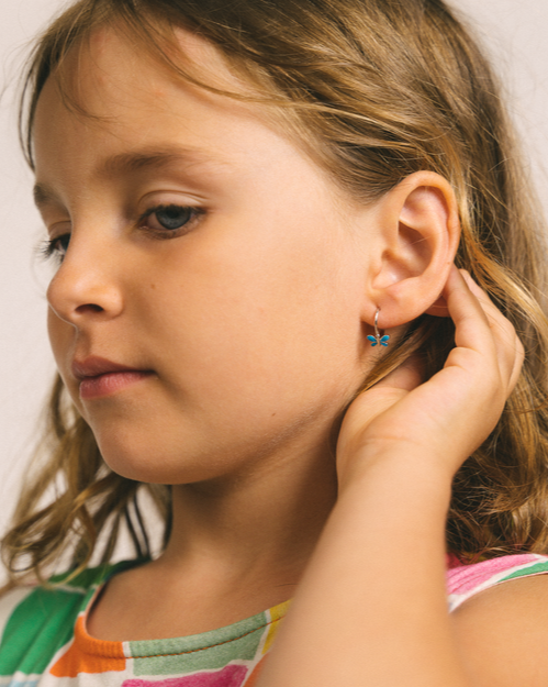 CERCEI DIN ARGINT COPII BLUE BUTTERFLIES - Delicați, siguri și adorabili