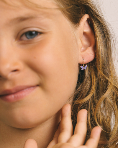 CERCEI DIN ARGINT COPII PURPLE BUTTERFLIES - Delicați, siguri și adorabili