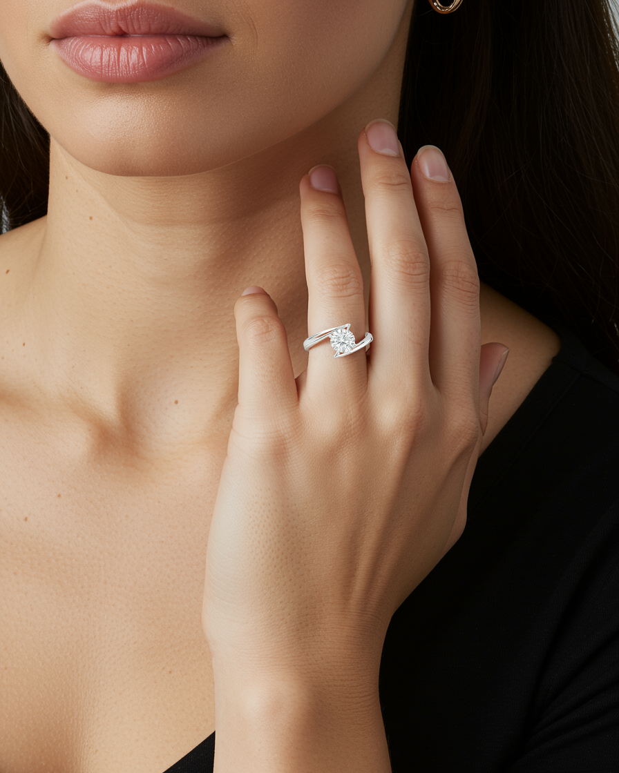 Simplu, dar cu un aer sofisticat. Piatra centrală e foarte frumoasă și bine pusă în valoare.